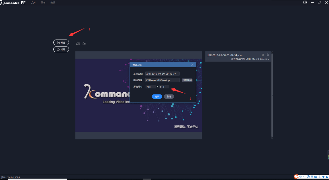 ,如无保存工程,直接点击新建,并输入当前潘多拉盒带载屏幕的大小